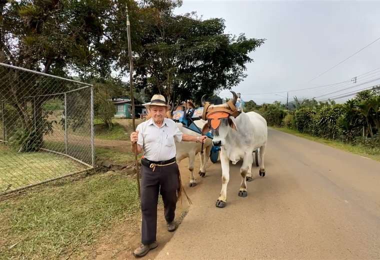 Ese camino está estrechamente ligado al oficio que marcó su vida. Don Juan José fue uno de los boyeros más queridos de La Paz de Piedades Sur de San Ramón, donde la tradición de la carreta y los bueyes sigue siendo parte esencial de la identidad local. Comenzó a los 13 años, guiado por su padre. “Él me enseñó a andar con bueyes y después me dediqué una buena parte de mi vida a trabajar con carreta y bueyes, cerca de 40 años”, relata con orgullo.