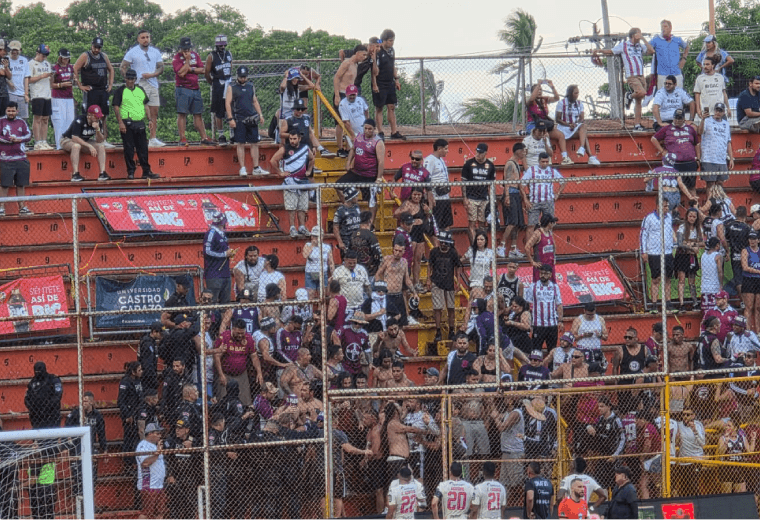 Enfrentamiento en gradería pausa juego entre Puntarenas y Saprissa en el Lito Pérez