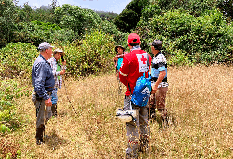 Unidades especializadas de Cruz Roja y Fuerza Pública utilizan drones y perros para tratar de encontrar a un menor de tres años que se extravió en una montaña de La Cima, en Dota, zona de Los Santos.
